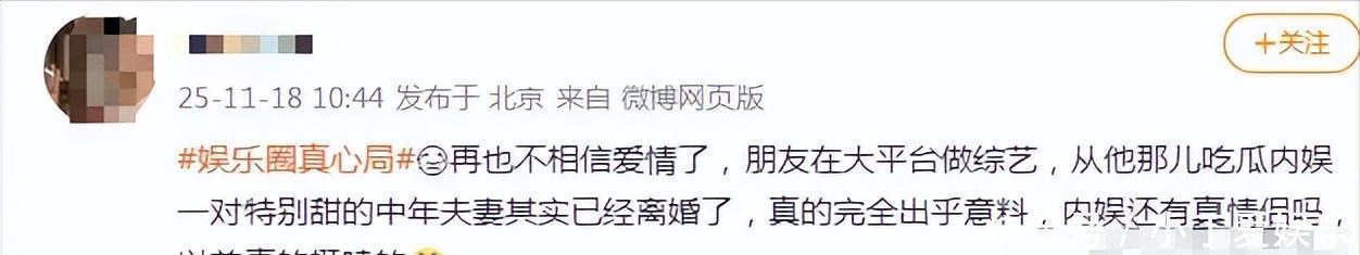 恩爱夫妻离婚有网友爆料“特别甜的中年夫妻其实已经离婚了”,他还说“再也不想爱情了”。